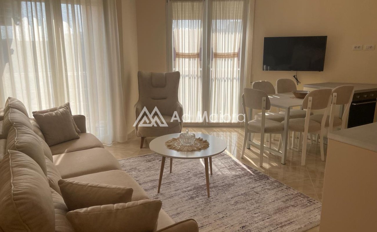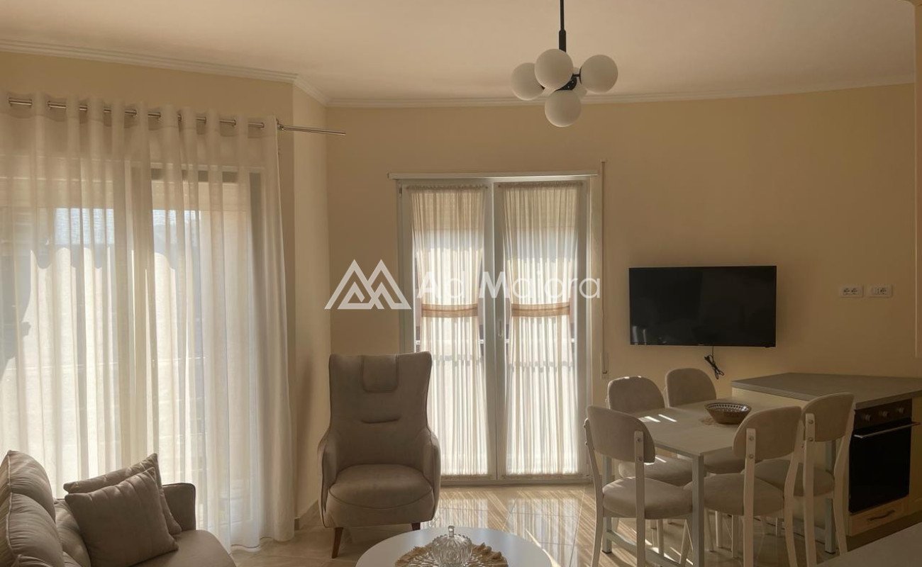 Apartament i organizuar ne 1 dhome gjumi ,soggiorno dhe kuzhine ,studio per te punuar dhe 1tualet.
