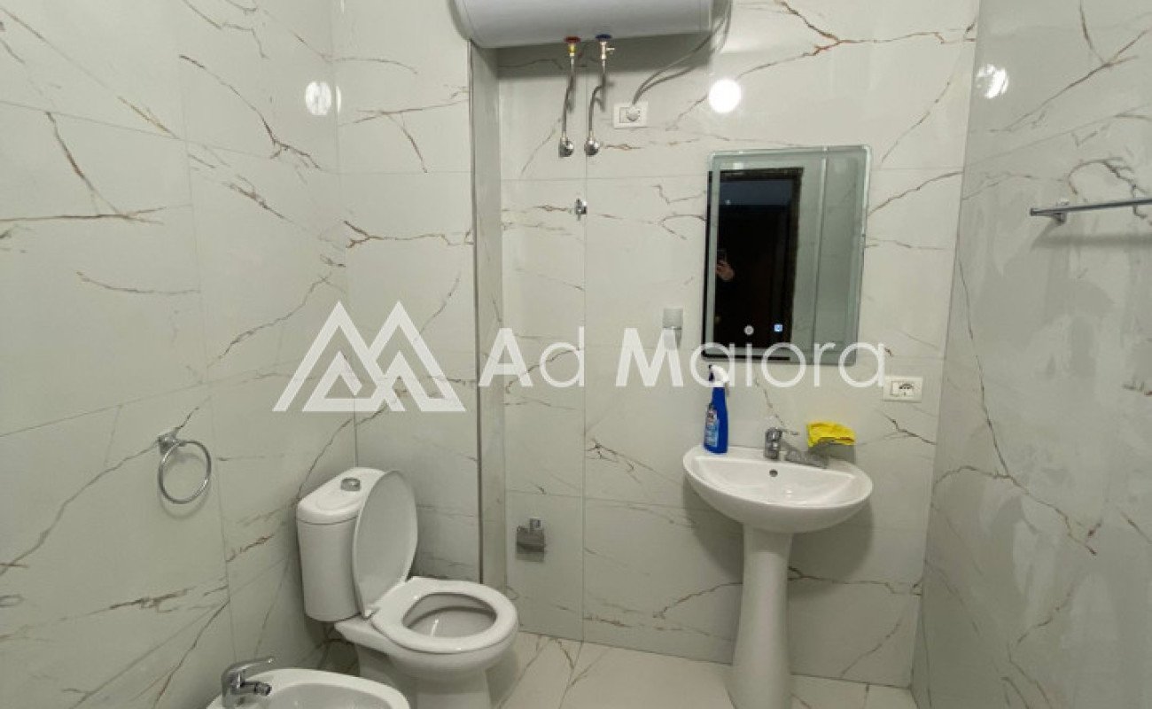 Apartament me siperfaqe 57m2 .Organizohet ne 1 dhome gjumi,soggiorno /kuzhine,tualet dhe ballkon.
