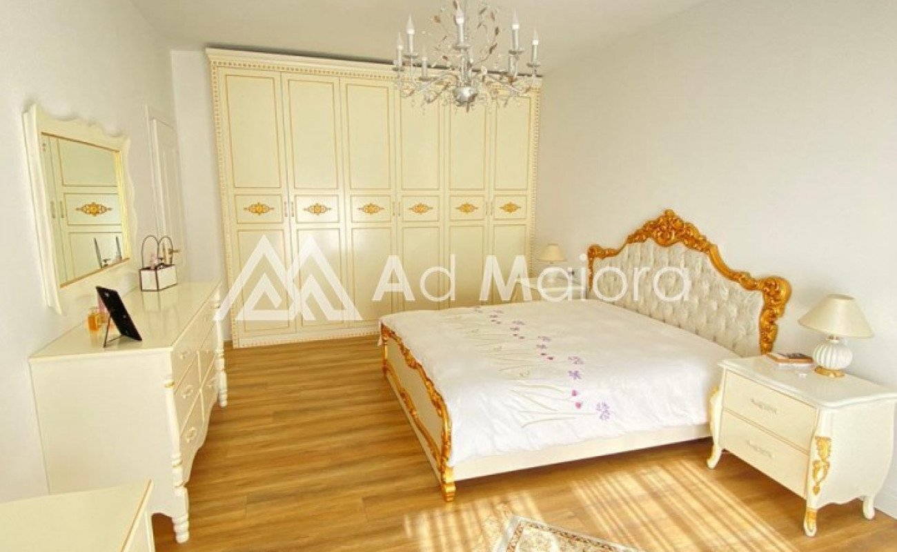 Apartamenti eshte me siperfaqe 160m2.Organizohet nga 2 dhoma te medha dhumi.1sogiorno e madhe 2 ballkone .tualet.